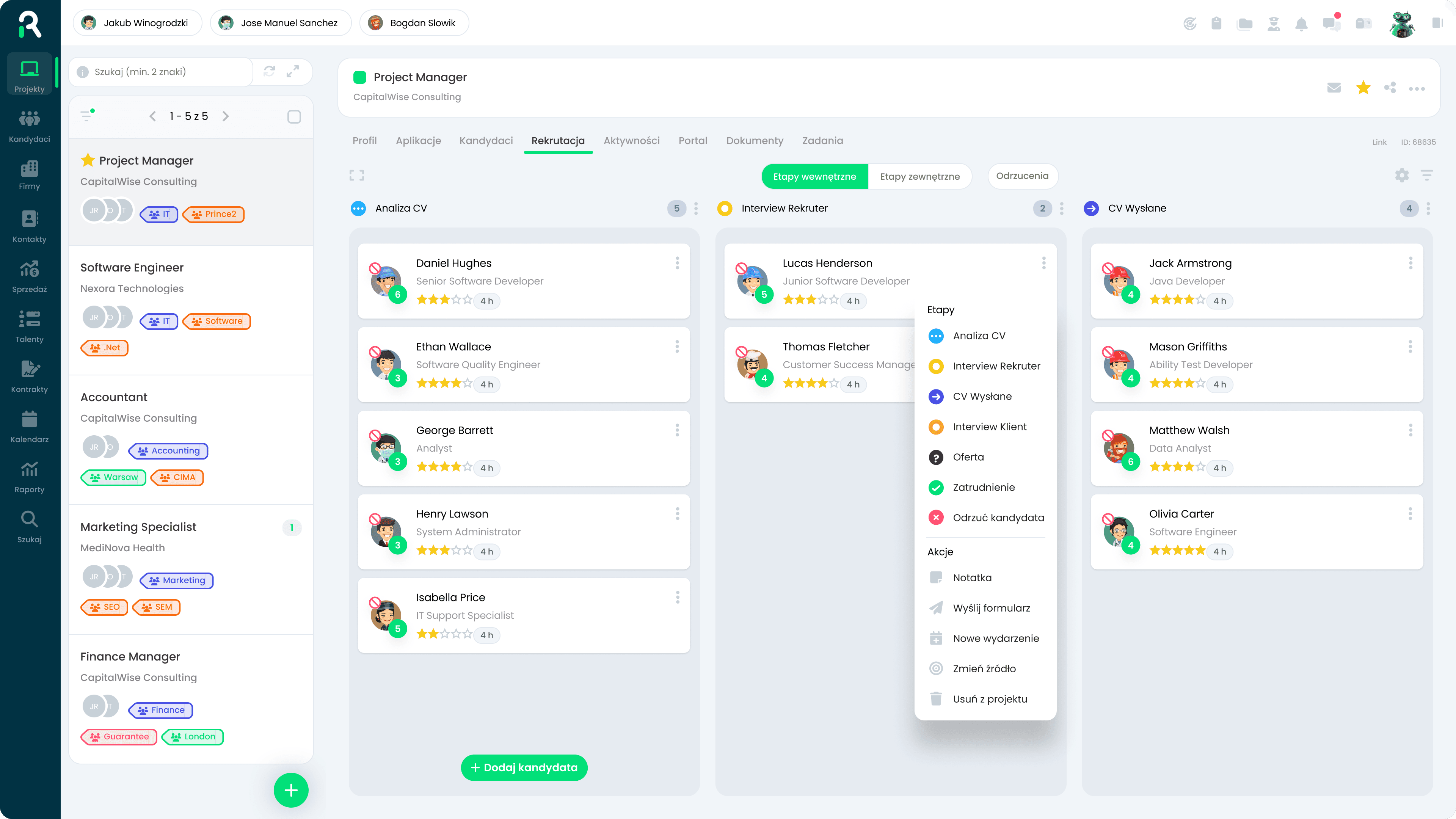 Zarządzaj relacjami z klientami i kandydatami w jednym miejscu. Błyskawicznie wysyłaj raporty do klientów i śledź całą komunikację bez przełączania okienek.